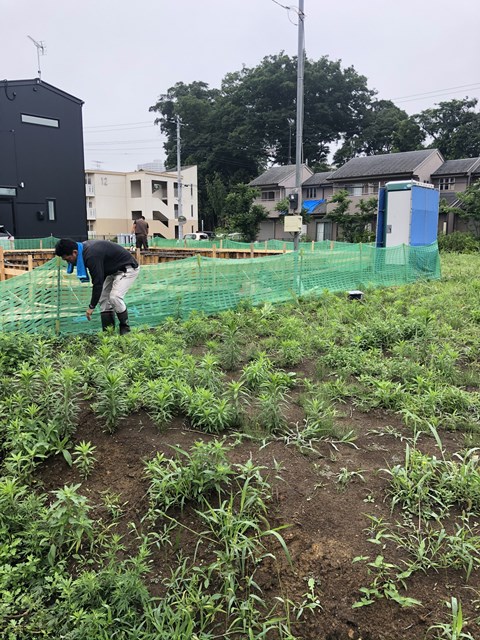 対角を出すのにもう1方は隣でK様邸の基礎立ち上がりを準備してた基礎職人Fさんを巻き込んでー
