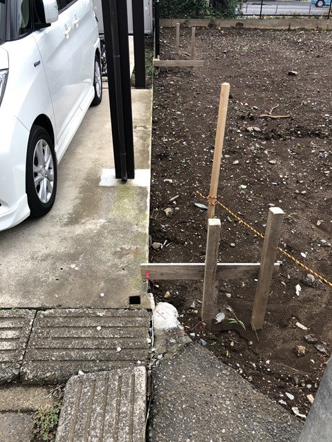 先日解体工事で撤去していただいた境界ブロックを積むにあたって