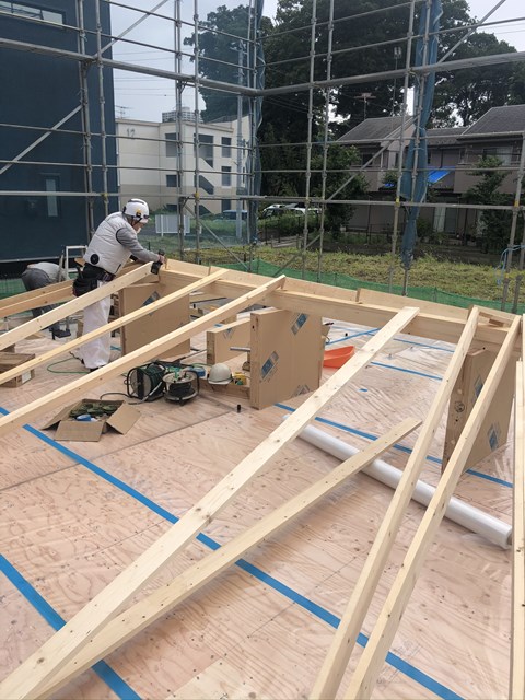 Kさんが雨仕舞で屋根を作ってた下地材お披露目((´∀`*))ヶラヶラ
