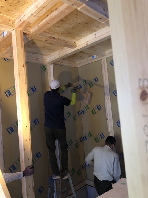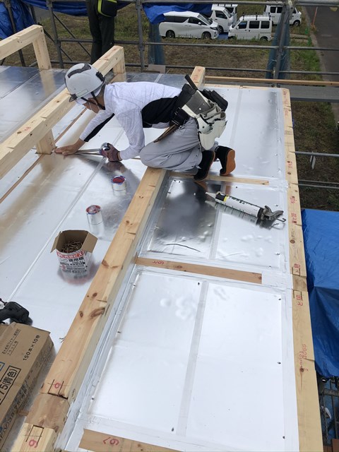 屋根のルーフィング(屋根の防水紙みたいなもの)施工が終わって5分もしないうちに