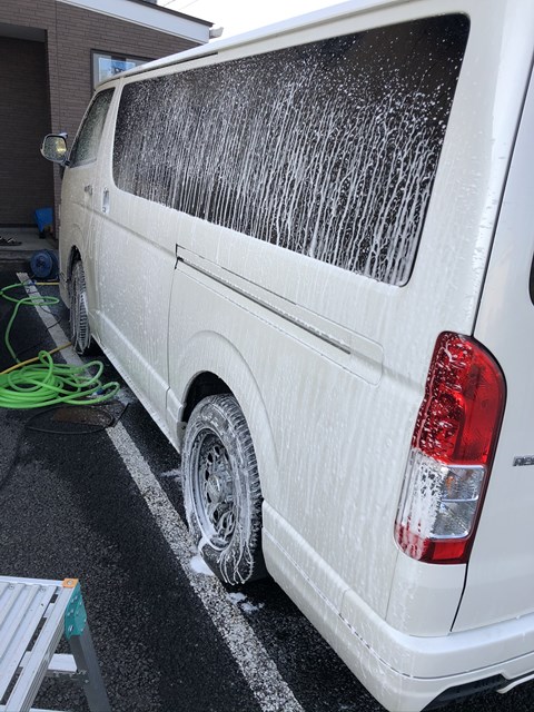 今日はあまりにも汚いので、一面ずつ洗車.。o○