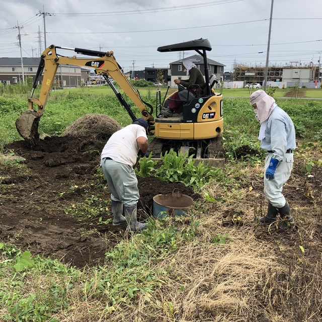 着くとすぐに重機を降ろして、準備開始。