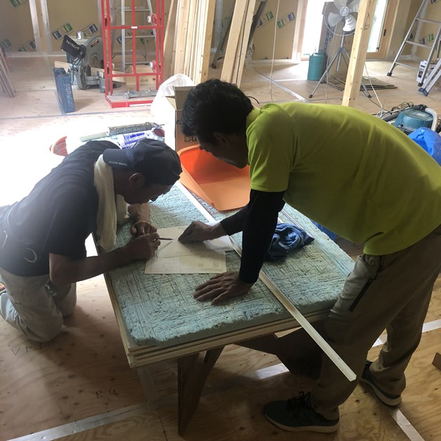 すっごい真剣にカントクゥ~と電気職人Iさん打ち合わせしてるでしょ?!