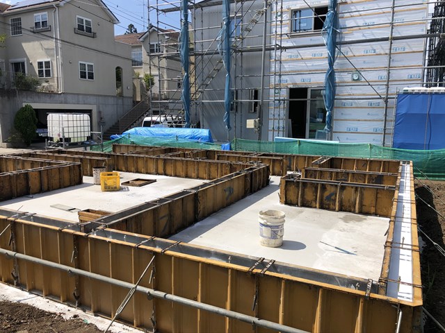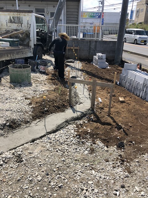 メチャクチャ暑いところ、外構Tさんがブロックベース工事してくれてますぅ👏