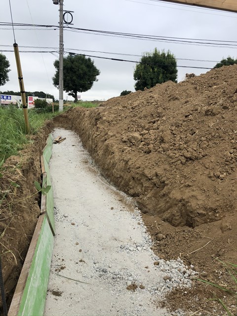 O様邸は隣地との高低差があるので、着工前に土留め工事からスターティン✨
