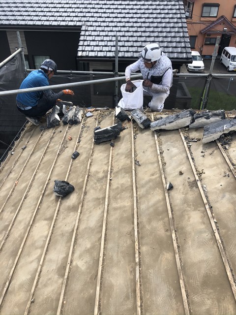 瓦を剥がし終わると、今度は漆喰を処分していきます。