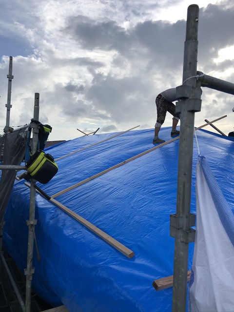 古いルーフィング(屋根の防水紙)も剥がすのネ~。