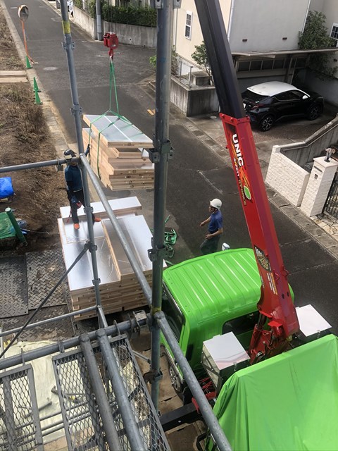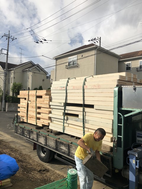 ジョージがドンって降ろしたパネルを今度はウチのトラックちゃんで荷揚げしますぅ~👍
