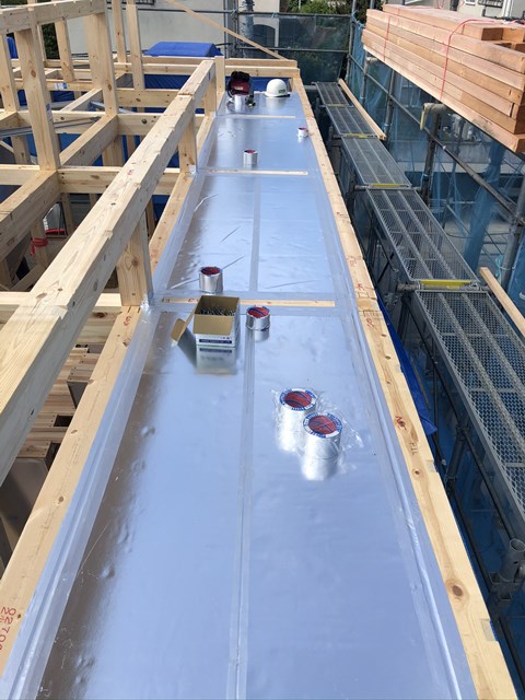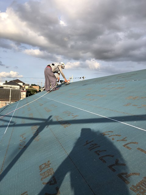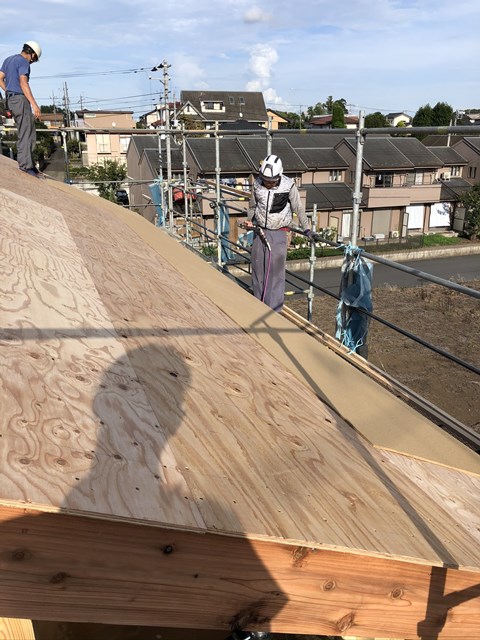 屋根の防水(ルーフィングって言います)を終わった直後、、、