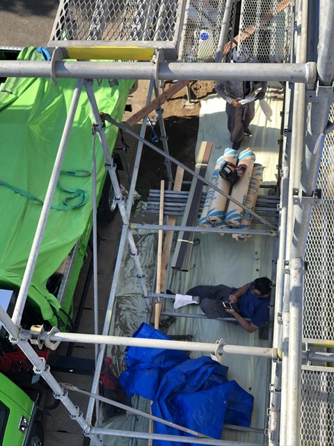 2Fパネルが到着してそれをトラックちゃんでカントクゥ~が2F足場のステージまで