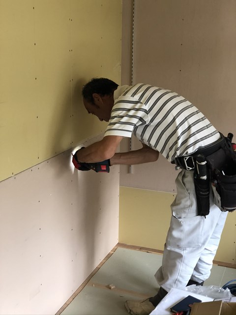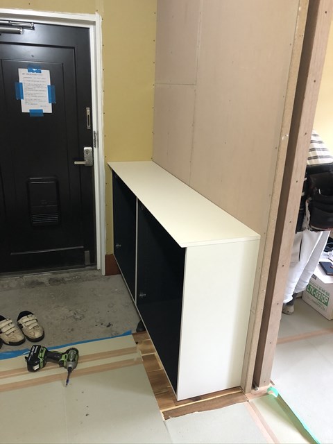 大工Yさんは下駄箱組んでた。
