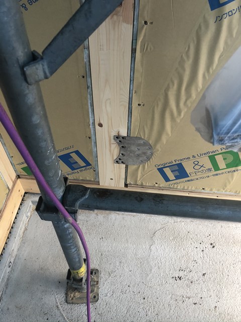 お隣のK様邸行くと~、構造検査に向けて金物取付しますぅ~。