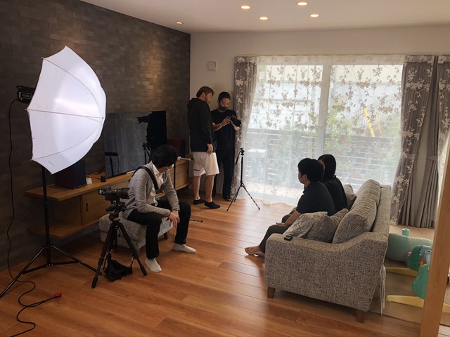 照明設置したり、E様ご夫婦にピンマイク付けたりメッチャ本格的!