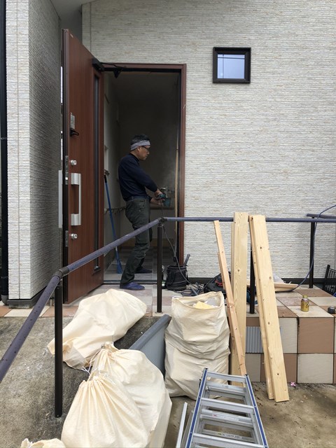 玄関開き戸を引き戸へ変更します!