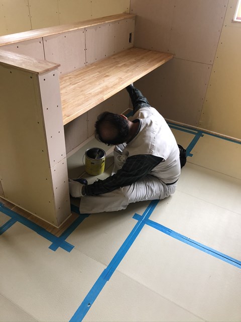 ウチの全棟内部塗装をしてくださる職人Hさん。