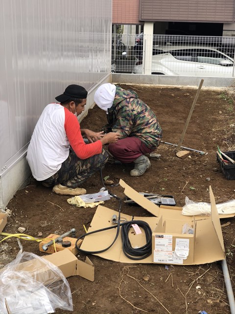 ポンプの取り付けをオトウタマにやっていただいております~。