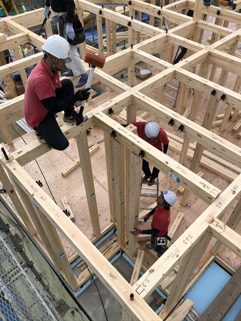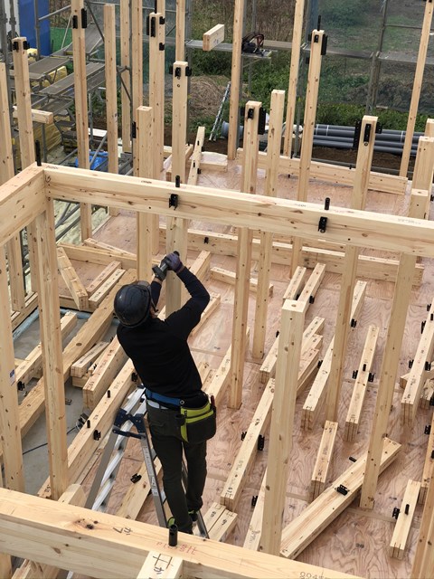カントクゥ~も大工さんと一緒にピン打ち込みやります!
