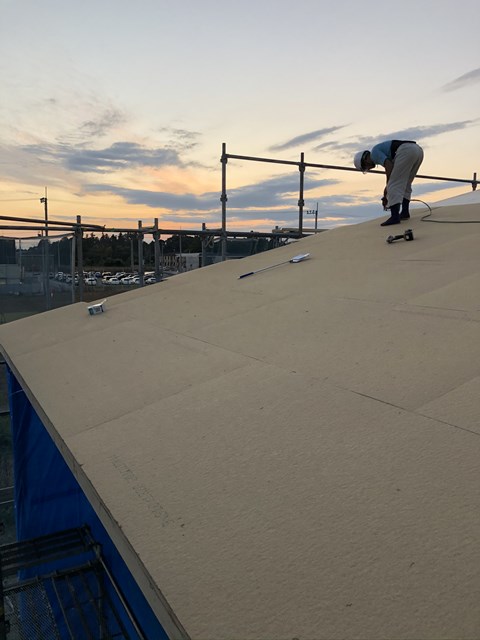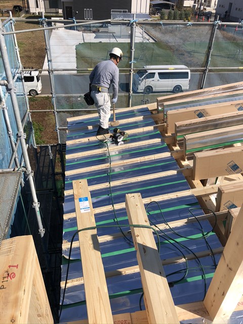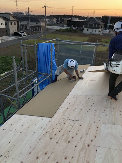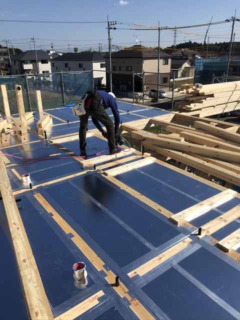野地を張ると、通常は防水紙のルーフィングというのを張りますが
