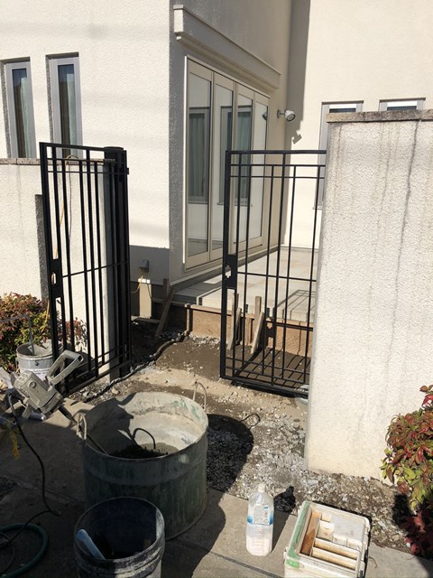 緊急で門扉取り付け等の現場。