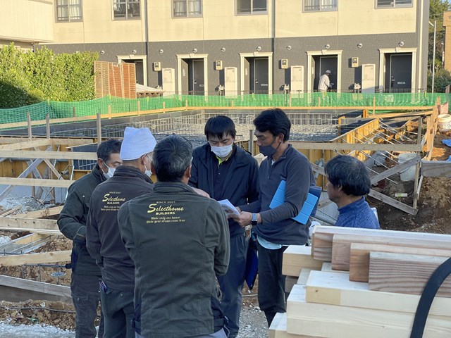 配筋検査終わって、大工さんたちの集中質問。
