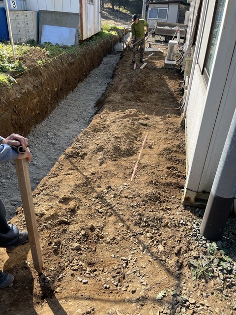 外構Tさん、昨日一日でVILLAGEのK様邸土工事終わらせてCOMEBACK!