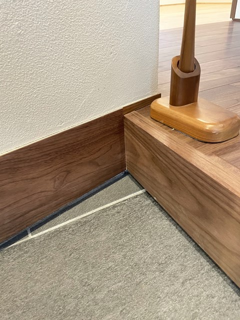 室内からくる巾木が自然とつながるように玄関巾木を上がり框の高さと巾木高さの合計高さに合わせて
