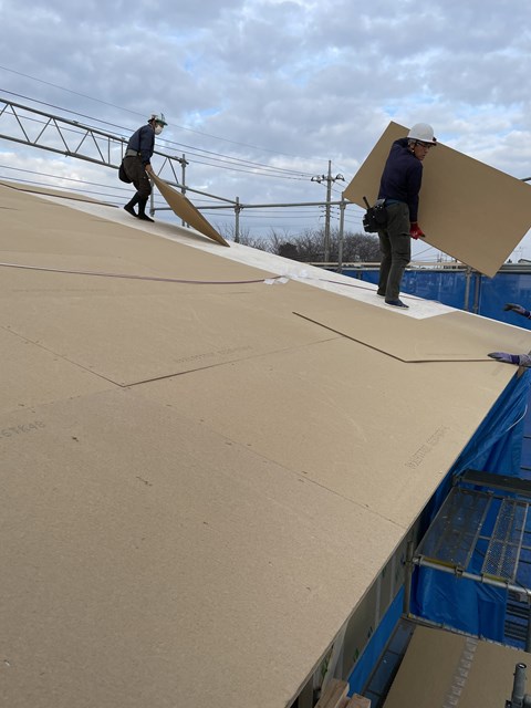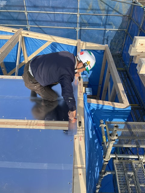 小屋パネと梁・桁との接合部に気密テープを貼ってるんですけど