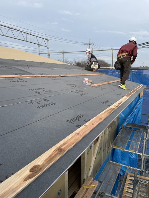 防水紙を止めるのにタッカー(ホチキスみたいなやつ)でとめるんだけど