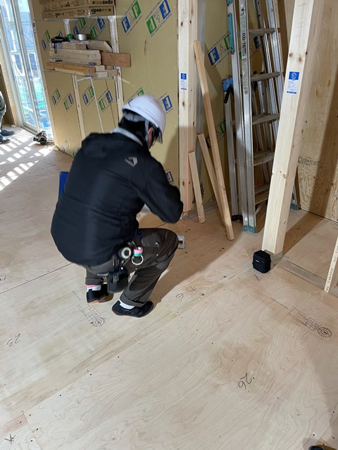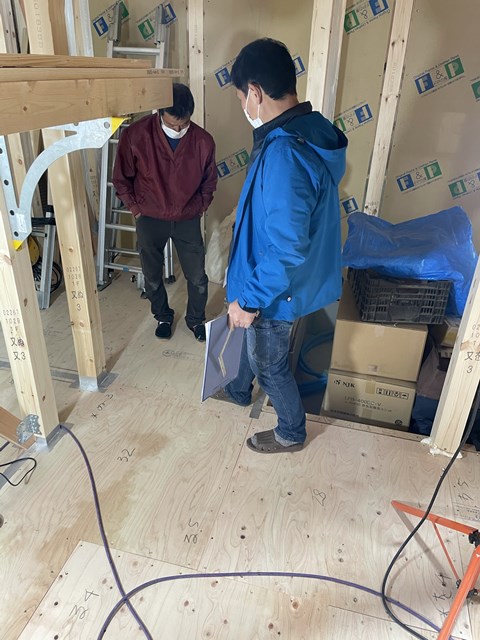 懐中電灯で照らしてる方が瑕疵保険の構造検査員。