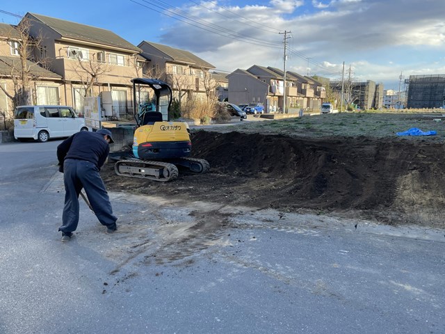 地盤改良の重機が高低差があると入れないので、進入路を作っていただいたの。