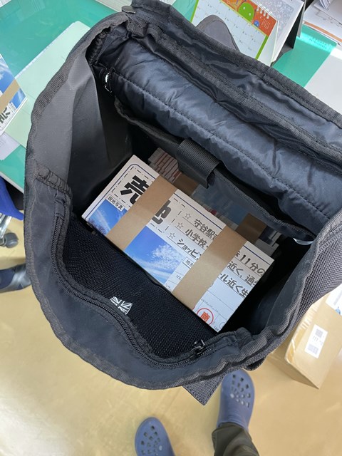 チラシがA3なので、重量かなりあります。。。一人で行こうとすると奥様に