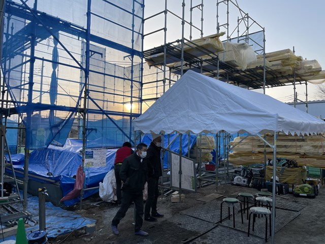 そしたら、もっとあふれ出てる大工3人もうスタンバってた😏