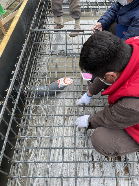 ここからは1時間かけて配筋が図面通りの仕様になっているか、結束、空き寸法など問題無いかを