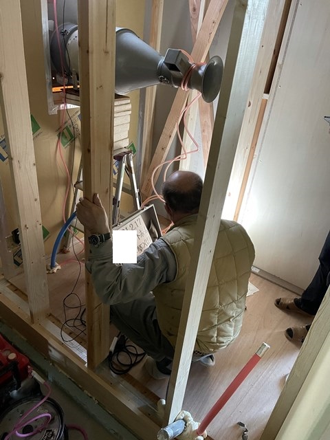 今日はねぇ~打ち合わせ前に気密測定ですー👍
