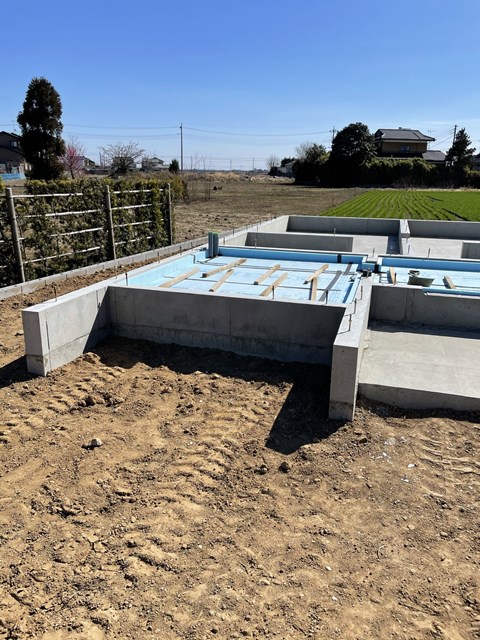 因みに、この上に生コン流して完了となるので基礎工事仕上がっちゃうと見れない部分ね。
