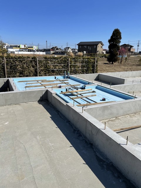 断熱材が敷いてあるところは玄関と土間収納部なんですが
