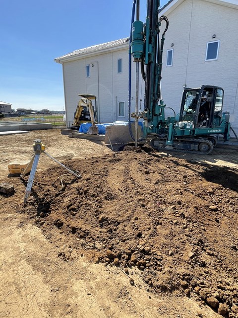 今日と明日T様邸の地盤改良工事~グリグリしてますー。
