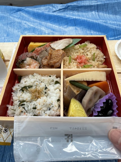 S様にご用意いただいたお弁当をみんなでガッツきます😆