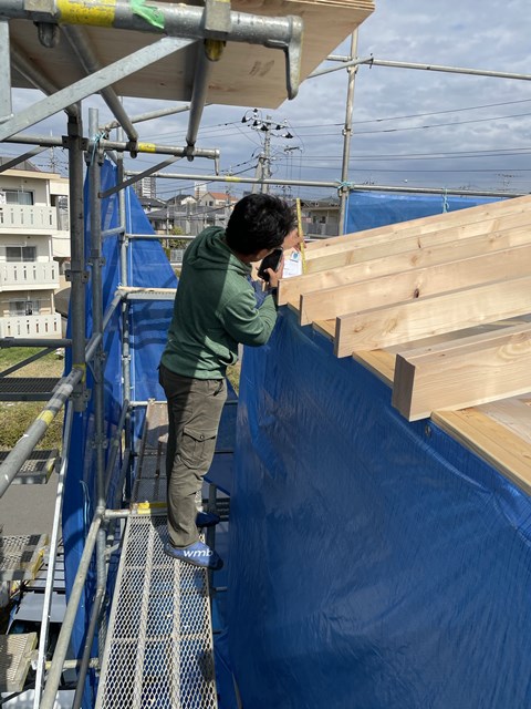 大工さんたちが屋根垂木施工終わると、カントクゥ~は1つ1つの工程を施工写真に納めます👍