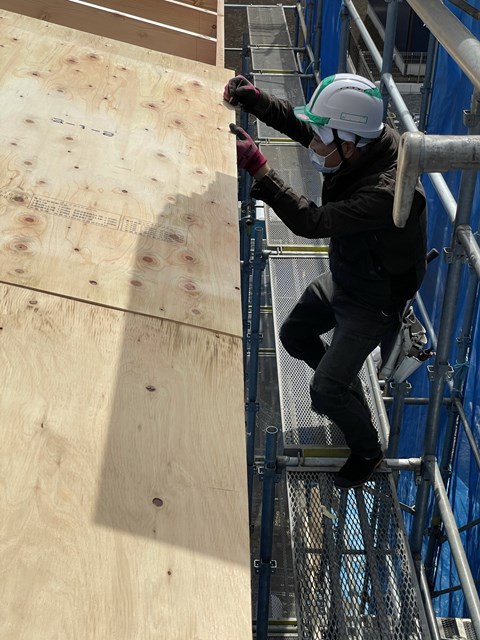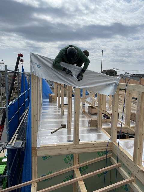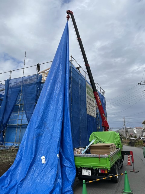 先日上棟したS様邸の2日目は明日行う予定でしたが、昨日が予想以上の大荒れだったので