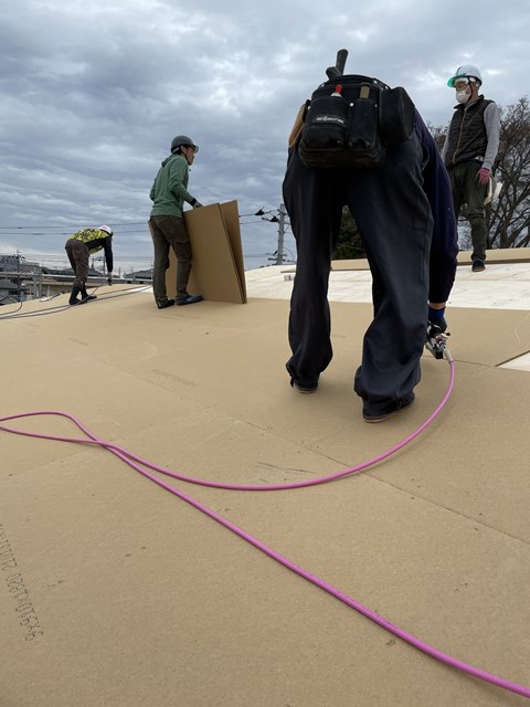 2日目で屋根を仕上げていきます。ウチの仕様だとどうしても1日で屋根まで行けないのよ(´・ω・)(・ω・`)ネー