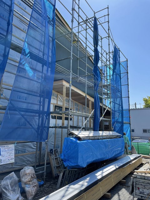 現場着くと板金Kさんがガルバリウム鋼板を施工してます☝