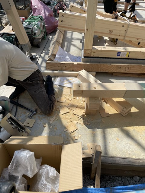 化粧柱のヒノキを削ってたのでヒノキ臭がプンプンしてますー。