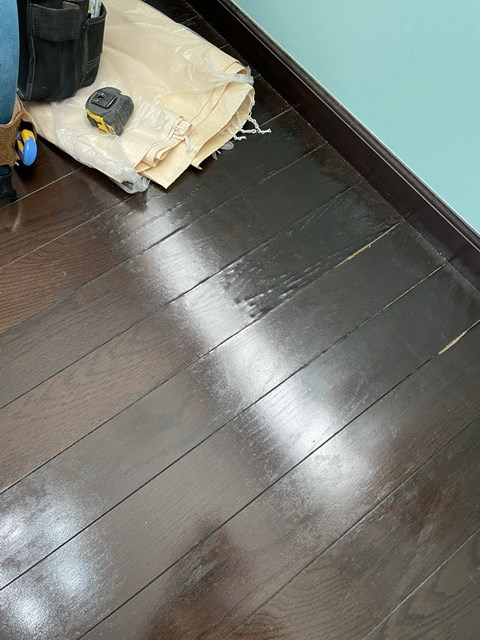 ワンちゃんが粗相してしまって、気付かず床を放置するとこうなっちゃうのよねぇ~((+_+))