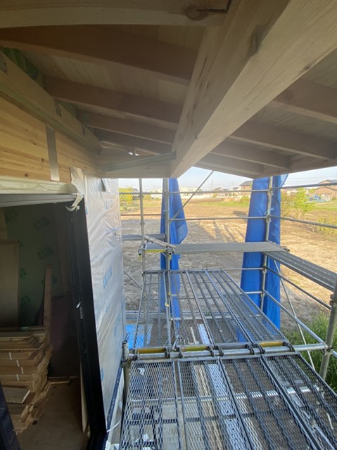 こちらは、つくばみらい市T様邸ですねぇ~。破風から軒天がまっすぐ平らで持ってくると特大サッシ上端にピッタリ納まって