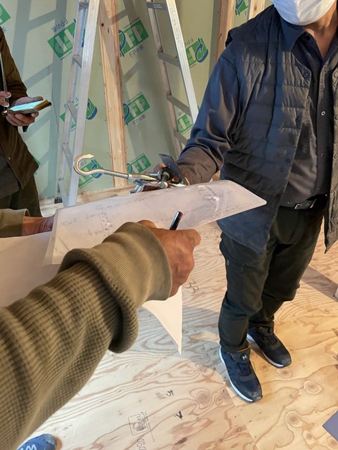 S様邸にて鉄骨階段と手すりの打ち合わせ。