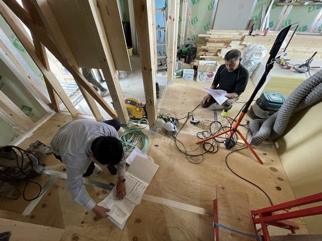 お隣のT様邸へ移動して、大工Kさんと打ち合わせ~。