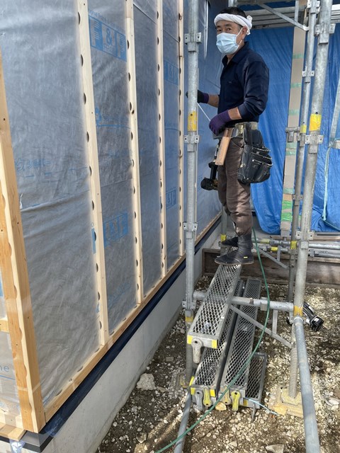 エアホールタイプの胴縁を施工してます~。