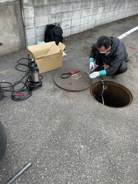 お次は水中ポンプ交換の立ち合い。
