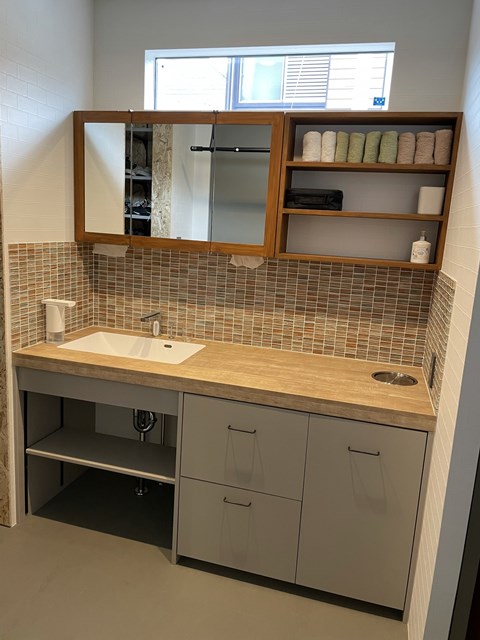 鏡はA様持ち込んでいただいて、右の造作棚を弊社で手作り👍